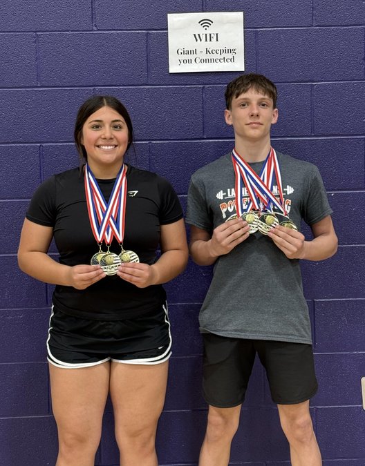 HOYT — Larned powerlifting coaches Kirby Westerman and Keenan Rasmussen guided the Indian girls and boys to a pair of Class 2A first-place medals and seven medals