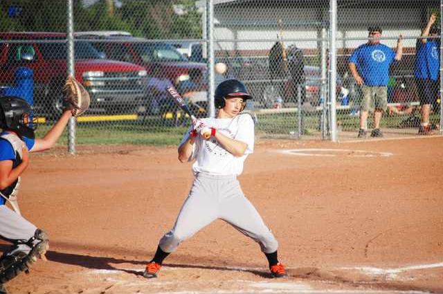 JUST A BIT INSIDE ... Kyler Merten of the Great Bend Tornados ducks from a pitch that got away from a Great Bend Royals pitcher during a Great Bend Recreation Commission baseball game for youths entering grades seven and eight on Tuesday evening at Jim Langrehr Field, which is located on the perimeter of the Great Bend Sports Complex.