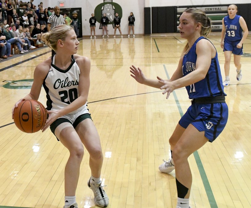 ST. JOHN GIRLS 45, CENTRAL PLAINS 33 — St. John's girls won the battle for second place with a 45-33 Central Prairie League basketball victory over Central Plains.