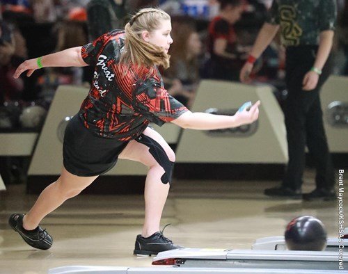 GB (1–Kaylin Wahlmeier, 661 (245-252-164); 3–Zoey Mayberry, 472 (164-147-161); 4–Brooklyn Mayberry, 363 (153-152-158); 5–Emilee Nelson, 442 (135-150-157); 6–Paige Heine, 438 (154-122-162); 9–Rionna Rodriguez, 371 (123-120-128)