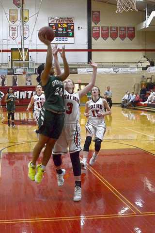 By JIM MISUNASjmisunas@gbtribune,com If the Great Bend girls basketball team improves by playing a schedule of state-ranked teams, the Panthers will continue to make progress.Last year’s 6A state runner-up No. 2 ranked Derby steamed past Great Bend 69-43 in Tuesday’s non-league basketball game.Derby featured five players in double figures keyed by Division 1 recruit Kennedy Brown, a 6-6 force in the paint. Great Bend’s defense and physical play made life tough for Brown, who managed 3 of 14 field goals.