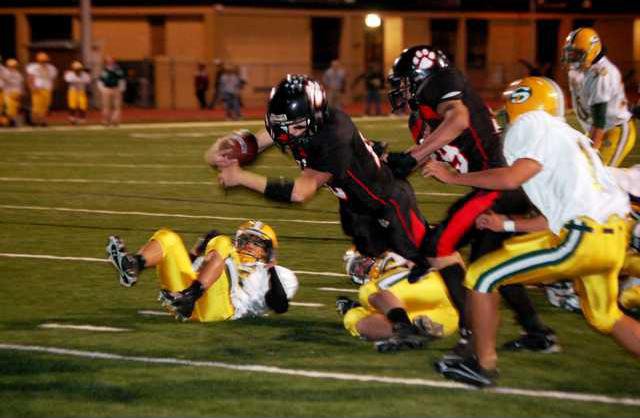Late in the third quarter, with the Panthers leading 35-21, Great Bend sophomore Chad Touslee picked up a fumble off an errant snap that sailed over the head of South quarterback Christian Linenberger and rumbled 60 yards for a 42-21 lead with 3:12 left in the third period.